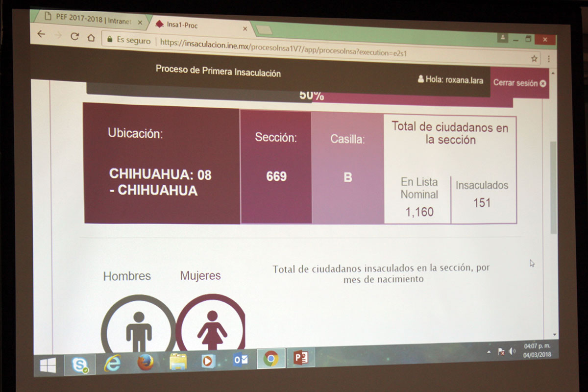 El Instituto Nacional Electoral (INE) en el estado de Chihuahua realizó la primera insaculación de los ciudadanos que serán convocados a participar como funcionarios de casilla en las elecciones del 1 de julio de 2018, quienes tendrán a su cargo la recepción y cómputo de los votos por Presidente de la República, Senadurías, Diputaciones Federales, Ayuntamiento, Sindicaturas y Diputaciones Locales.