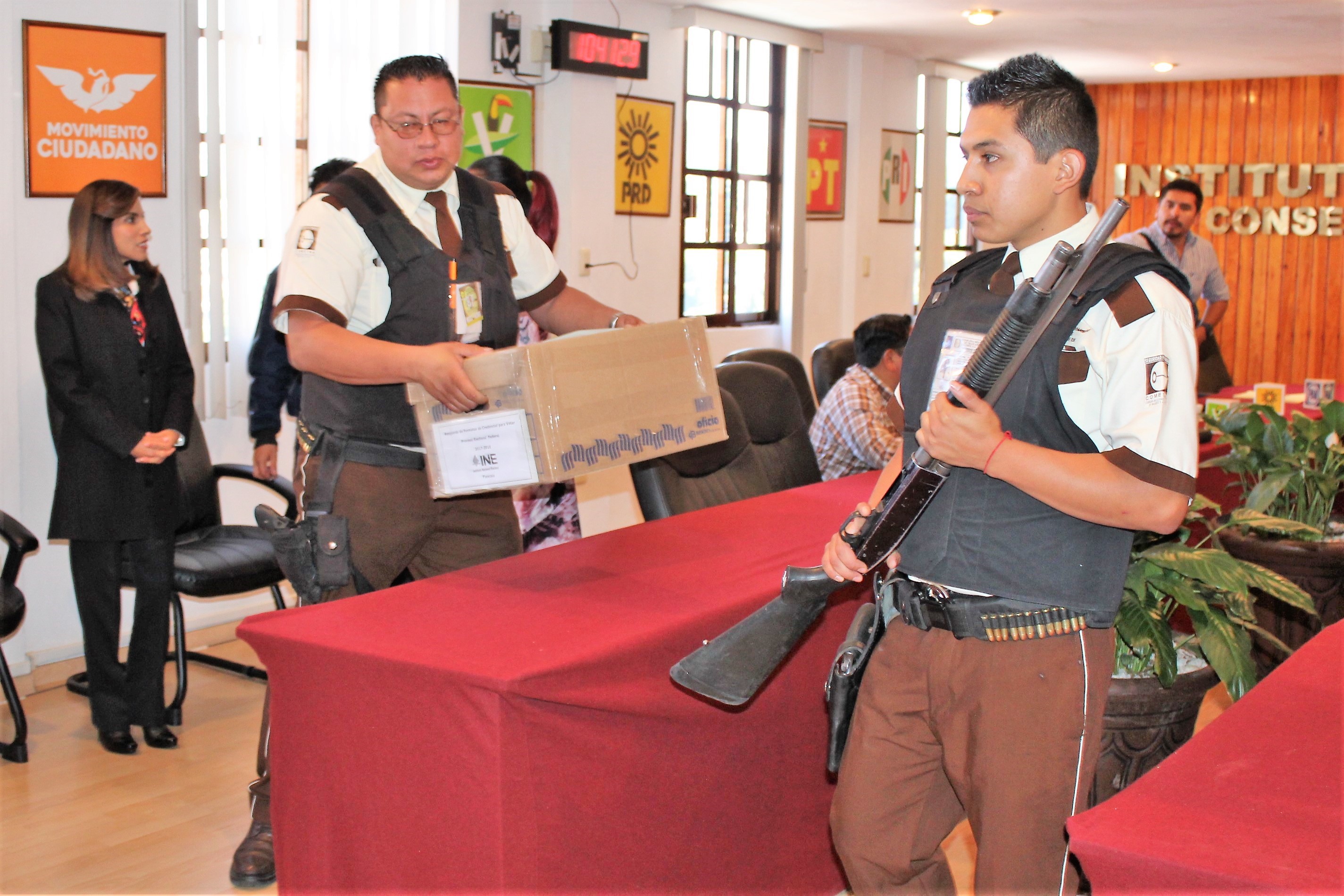 La actividad de resguardo de las credenciales se dio bajo la fe del Secretario del Consejo Local, Juan Manuel Crisanto Campos y atestiguada por Juan Carlos Rivas González, Consejero Electoral del INE, así como por la presidenta del Instituto Tlaxcalteca de Elecciones (ITE), Elizabeth Piedras Martínez y la Consejera Electoral de ese organismo local, Yareli Álvarez Meza.