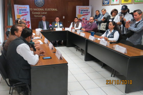 La democracia aspira a la inclusión y a la universalidad de una sociedad: Eduardo Manuel Trujillo Trujillo, Vocal Ejecutivo del INE en el Estado. En la entidad se espera la participación 113 mil 400 entre niñas, niños y jóvenes. En conferencia de prensa celebrada el 23 de octubre de 2018, el Instituto Nacional Electoral en Leer mas...