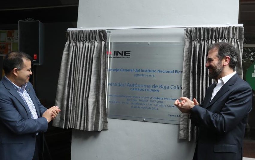 El Consejero Presidente del Instituto Nacional Electoral (INE), Lorenzo Córdova, reconoció la participación de la Universidad Autónoma de Baja California en el Segundo Debate Presidencial celebrado el 20 de mayo pasado.