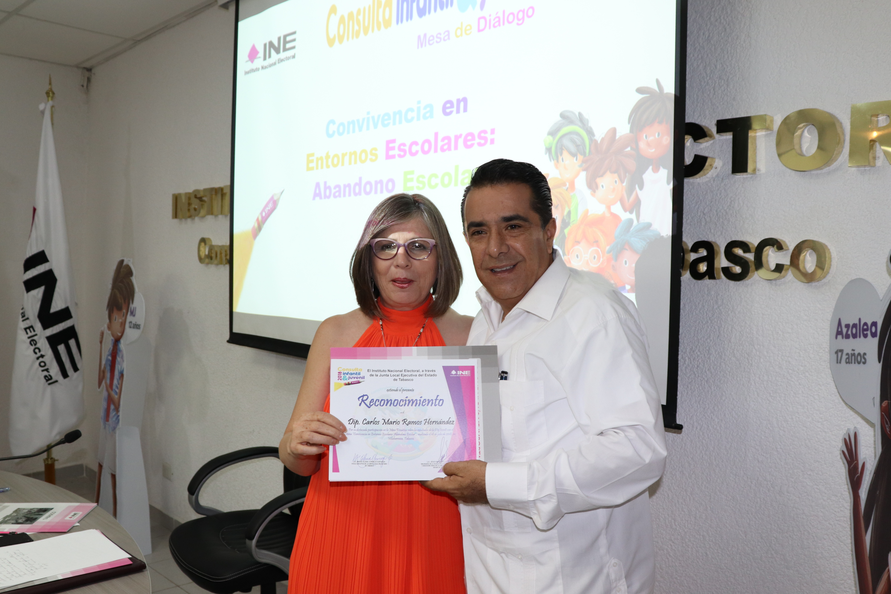 Cabe señalar que dentro de nuestros asistentes se contó con la presencia de la encargada de despacho de la delegación federal de la Secretaría de Educación en Tabasco, Irma Luna González, del Magistrado del Tribunal Electoral de Tabasco, Rigoberto Riley Mata Villanueva, la Consejera Claudia Jiménez López y los consejeros Víctor Mejía Naranjo y Juan Correa López, así como Jesús Hernández Díaz en representación del secretario de gobierno y Amalia Lutzow Alvarado en representación del Secretario de Educación.