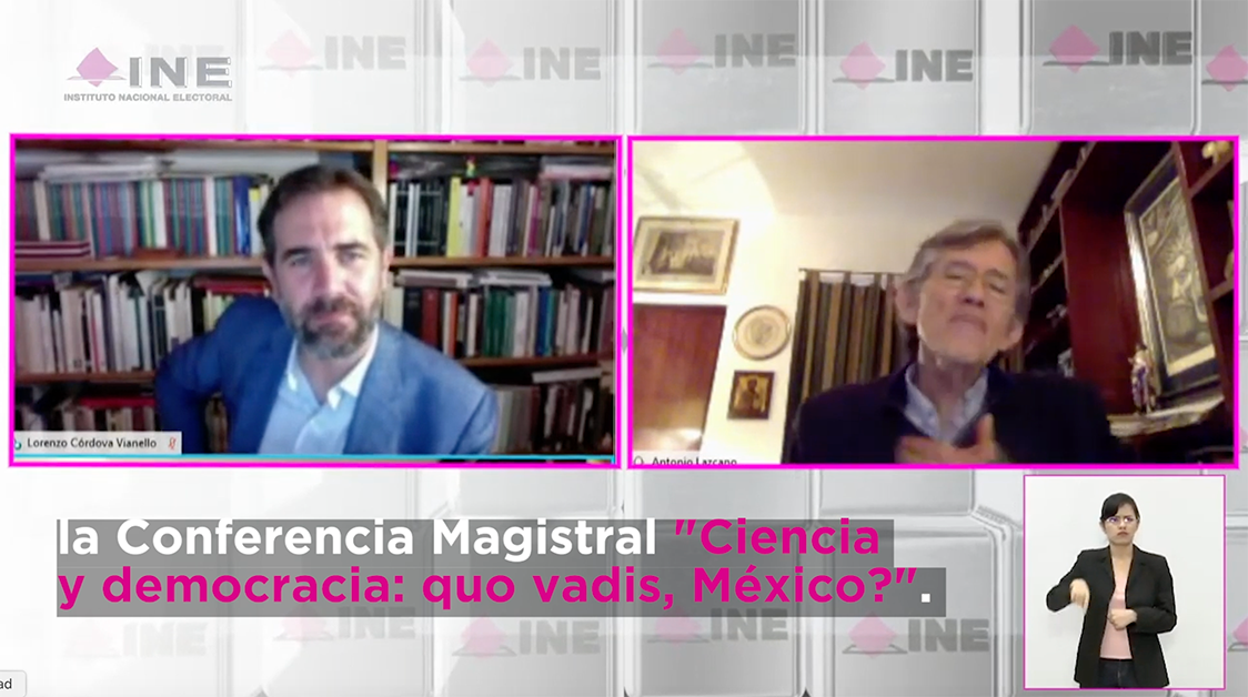 El científico y miembro de El Colegio Nacional, Antonio Lazcano Araujo, acompañado del Consejero Presidente del INE, Lorenzo Córdova, en la conferencia Magistral Estacional 2019, sugirió que México requiere un aparato científico insertado en el contexto internacional, y políticas incluyentes de investigación y desarrollo de las ciencias sociales y humanidades.