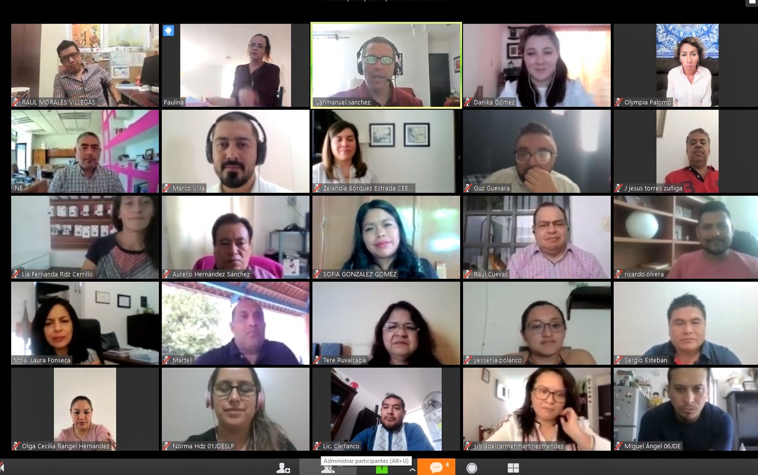 En la mesa participaron el Delegado del Instituto Nacional Electoral (INE) en San Luis Potosí Sergio Aispuro Cárdenas; la Consejera Presidenta del Consejo Estatal Electoral y de Participación Ciudadana de San Luis Potosí (CEEPAC) Laura Elena Fonseca Leal; el Presidente de la Comisión Estatal de Derechos Humanos Jorge Andrés López Espinosa; Consejera Electoral del CEEPAC Zelandia Bórquez Estrada, consejeras y consejeros del Consejo Local del INE en San Luis Potosí, vocales de la Junta Local Ejecutiva del INE en San Luis Potosí, personas de la Comunidad LGBTTTIQ+ y del Instituto Potosino de la Juventud.