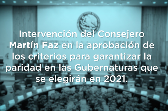 Intervención del Consejero Martín Faz, en la Sesión Extraordinaria del Consejo General, en la aprobación de los criterios para garantizar la paridad en las Gubernaturas que se elegirán en 2021.
