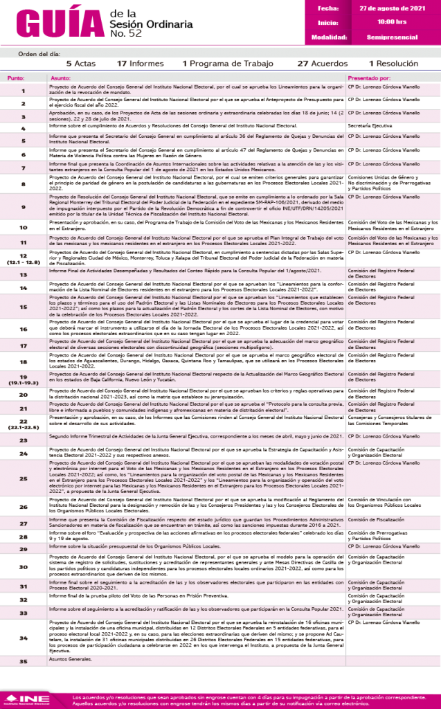 Guía de la Sesión Ordinaria del Consejo General, 27 de agosto de 2021