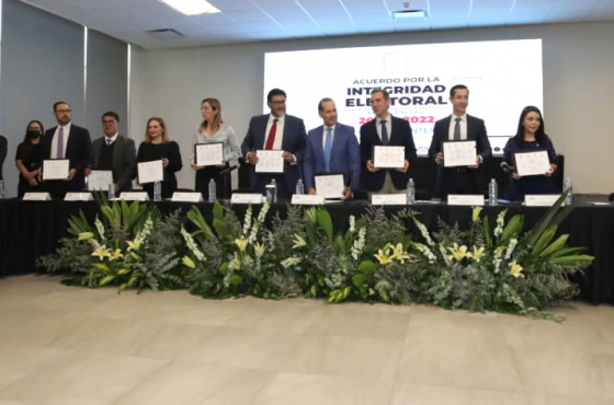 Conoce más aquí: En el marco de las elecciones del próximo 5 junio en Aguascalientes, el INE, el Tribunal Electoral del Poder Judicial de la Federación, así como el Tribunal Electoral, el Instituto Estatal Electoral y dirigentes de Partidos Políticos de la entidad, firmaron el Acuerdo por la Integridad Electoral en el Proceso Electoral 2021-2022. El Leer mas...