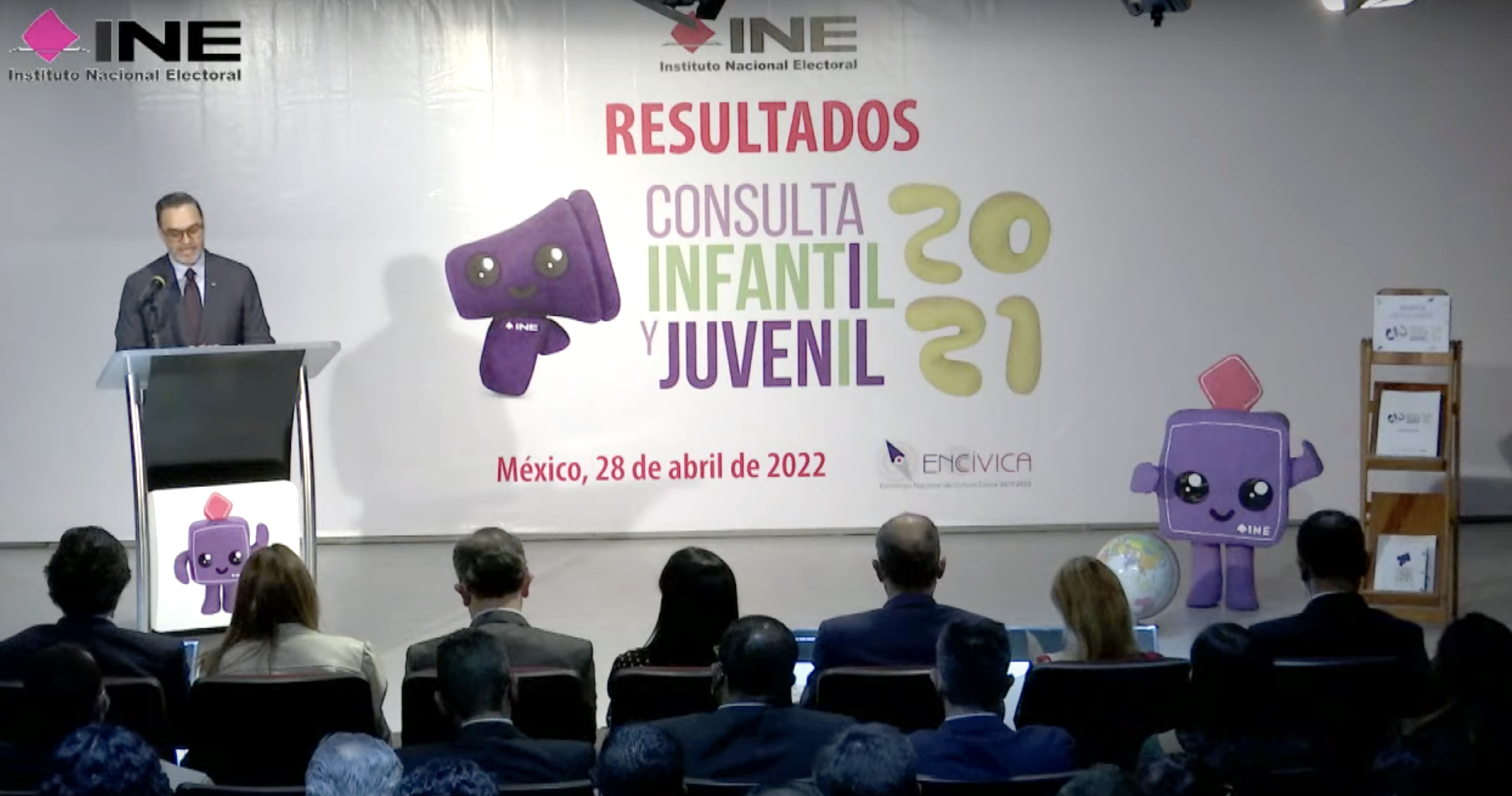 El Instituto Nacional Electoral presenta en esta ocasión, los resultados de la Consulta Infantil y Juvenil 2021, esta es la novena edición, ya, de estos ejercicios de participación y de expresión de la población más joven del país. Se organizan en el IFE, entonces, y ahora INE, desde 1997, como una herramienta para impulsar la familiarización de los procedimientos democráticos, pero, además, también, es un ejercicio de participación ciudadana en toda la dimensión.