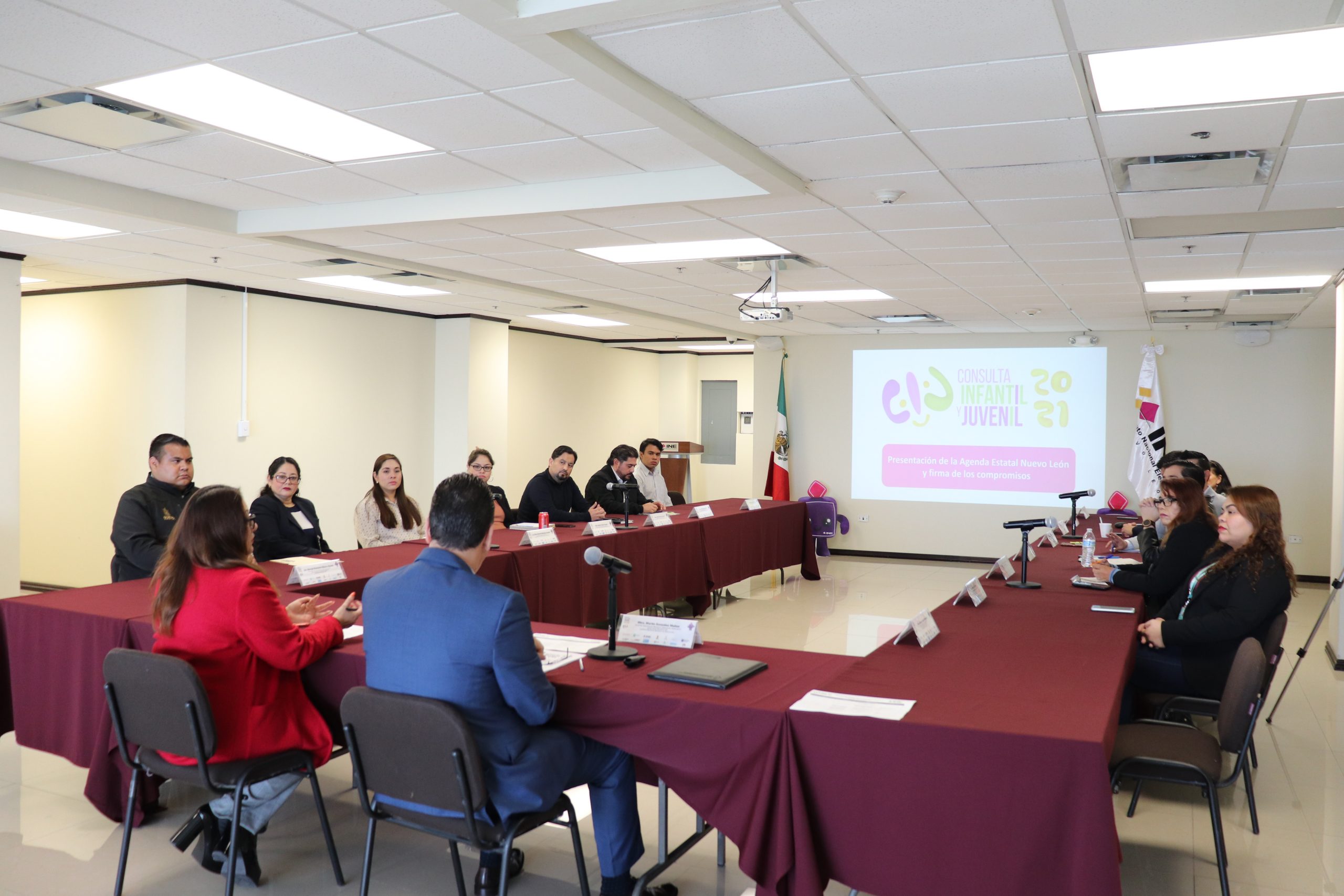 Representantes de las instituciones que conforman el Grupo Estatal de Coordinación Institucional de la CIJ 2021, integrado por instancias federales, estatales, civiles y partidos políticos se dieron cita en la sala de sesiones de la Junta Local Ejecutiva del INE Nuevo León para formalizar su participación, que consistirá en distintas acciones y actividades que se realizarán a lo largo del presente año.