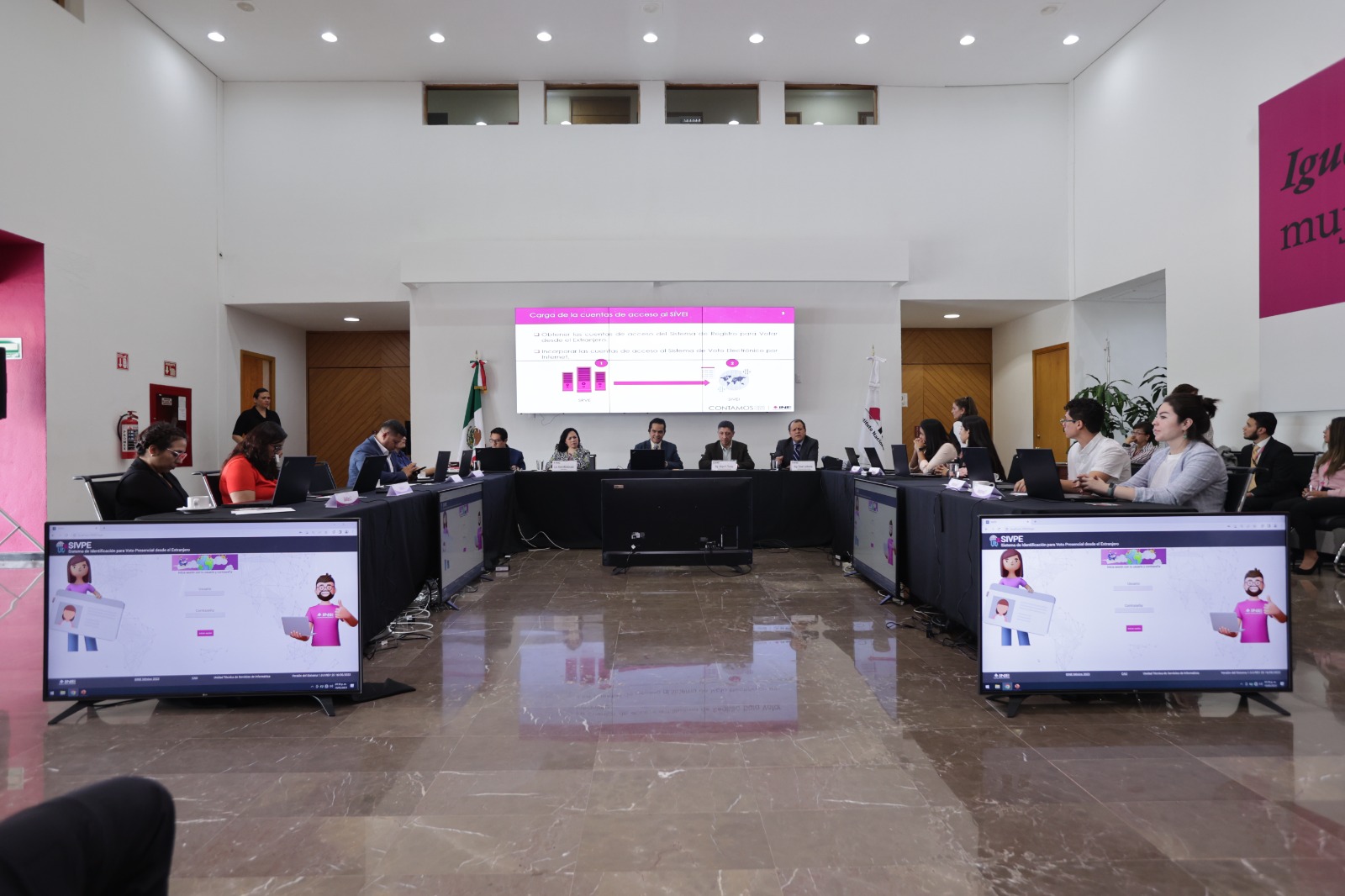 Posteriormente, se efectuó la inicialización del sistema y carga de la LNERE al Sistema de Identificación para Voto Presencial en el Extranjero específicamente en los ocho equipos de cómputo, dos por cada una de las cuatro sedes consulares de México en Estados Unidos (Chicago, Dallas y Los Ángeles) y Canadá (Montreal), que se utilizarán en los Módulos Receptores de Votación (MRV) el día de la Jornada Electoral, cuando podrán votar coahuilenses y mexiquenses bajo la modalidad presencial.