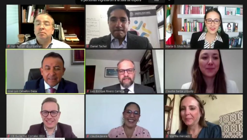 La Consejera Claudia Zavala participó en el diálogo junto con Yuri Beltrán, Exconsejero del Instituto Electoral de la Ciudad de México, y Daniel Tacher Contreras, Secretario Técnico de la Coordinación General de la Oficina de la Presidencia del TEPJF.