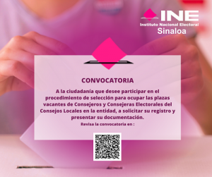 INE Sinaloa invita a participar en la convocatoria para ocupar Consejerías Electorales del Consejo Local 17 junio, 2023