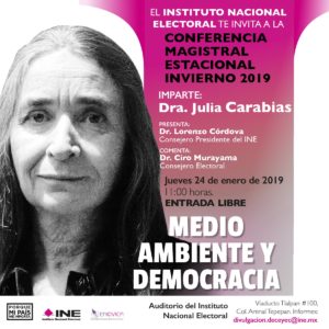 Conferencia Magistral Estacional Invierno 2019, «Medio ambiente y democracia», de la Dra. Julia Carabias 24 enero, 2019